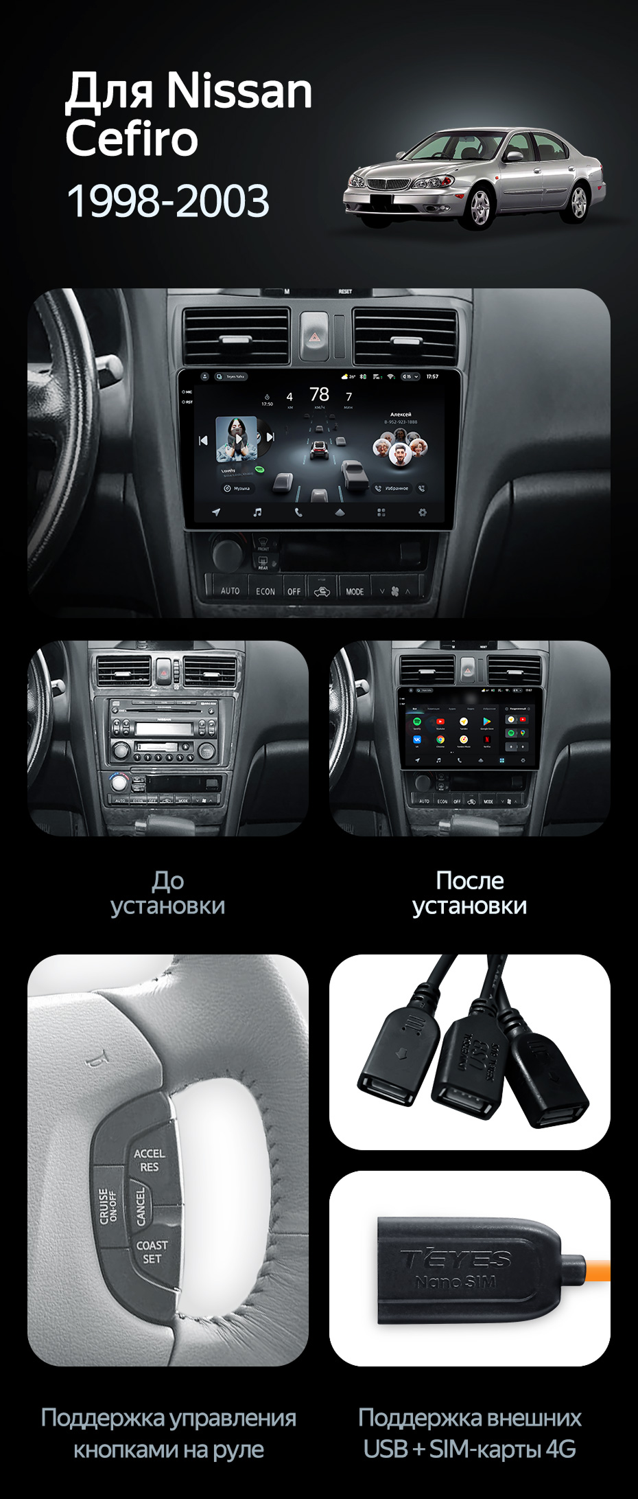 Переходная рамка Nissan Cefiro 3 A33 (1998-2003) F2 (9") - купить всего за 3 600 руб. в интернет-магазине в Великом Новгороде Teyes.com.ru. ✓ Самый лучший выбор мультимедиа ✓ Лучшая замена штатному ГУ ✓ Тел. +7 (800) 775-31-74