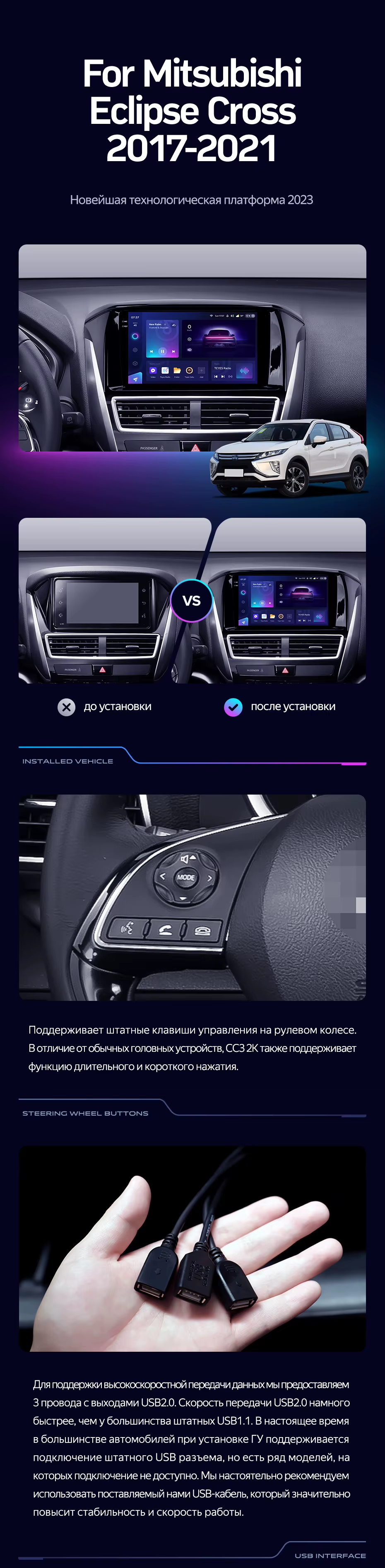 Штатная магнитола Teyes CC3 2K 4/32 Mitsubishi Eclipse Cross 1 (2017-2021) F1 - купить всего за 39 940 руб. в интернет-магазине в Великом Новгороде Teyes.com.ru. ✓ Самый лучший выбор мультимедиа ✓ Лучшая замена штатному ГУ ✓ Тел. +7 (800) 775-31-74