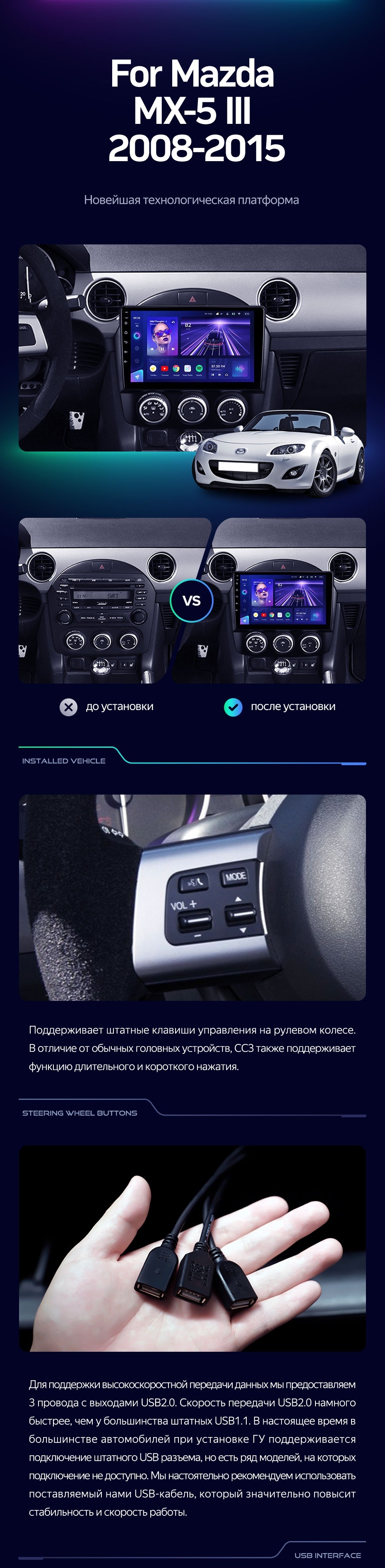 Штатная магнитола Teyes CC3 4/32 Mazda MX-5 (2008-2015) - купить всего за 34 230 руб. в интернет-магазине в Великом Новгороде Teyes.com.ru. ✓ Самый лучший выбор мультимедиа ✓ Лучшая замена штатному ГУ ✓ Тел. +7 (800) 775-31-74