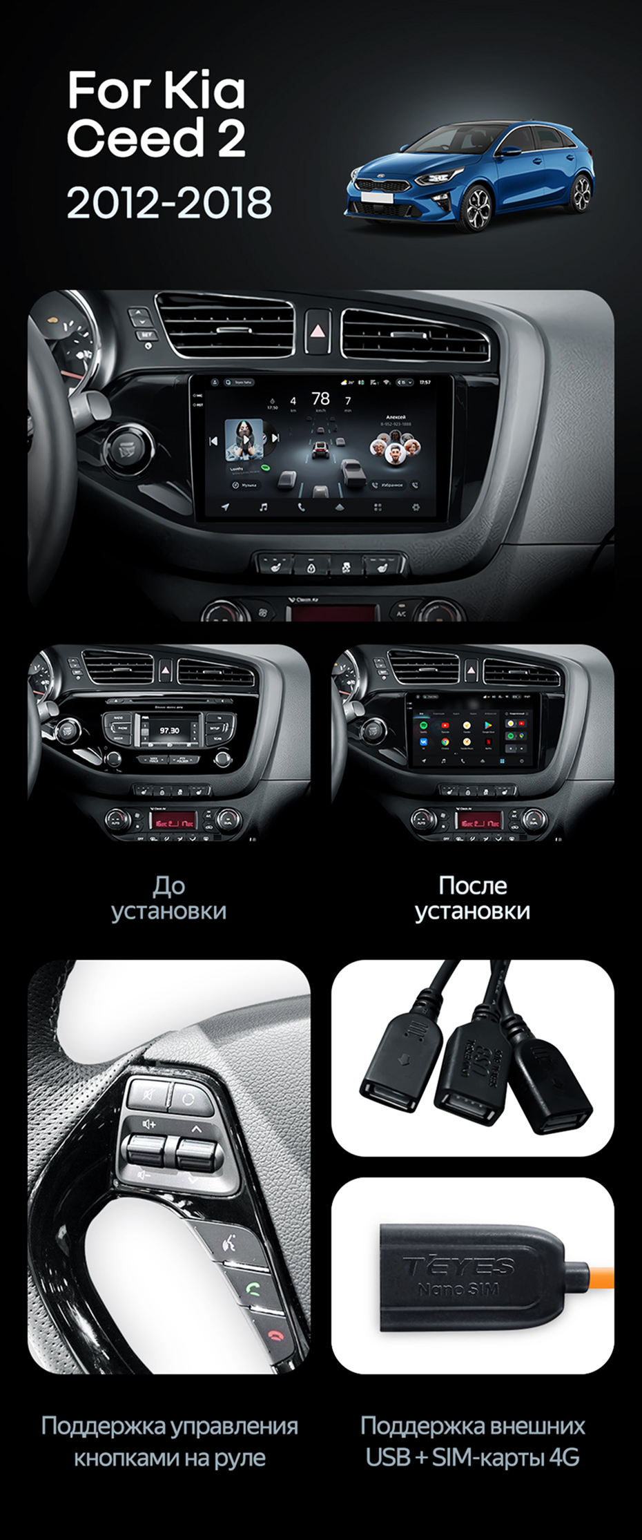 Штатная магнитола Teyes CC4 6/64 Kia Ceed 2 JD (2012-2018) - купить всего за 43 920 руб. в интернет-магазине в Великом Новгороде Teyes.com.ru. ✓ Самый лучший выбор мультимедиа ✓ Лучшая замена штатному ГУ ✓ Тел. +7 (800) 775-31-74