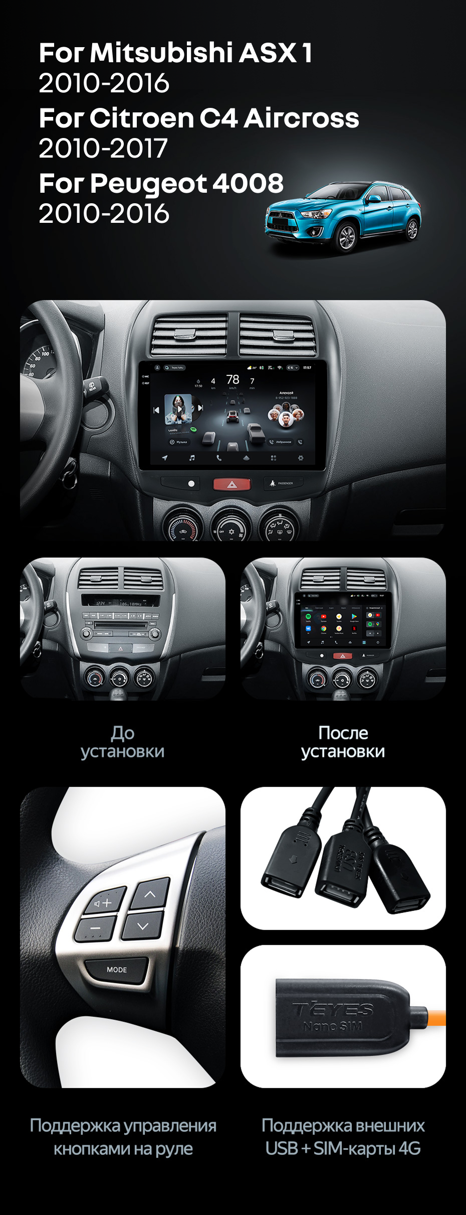Штатная магнитола Teyes CC4 6/64 Mitsubishi ASX 1 (2010-2016) Тип-B - купить всего за 48 100 руб. в интернет-магазине в Великом Новгороде Teyes.com.ru. ✓ Самый лучший выбор мультимедиа ✓ Лучшая замена штатному ГУ ✓ Тел. +7 (800) 775-31-74