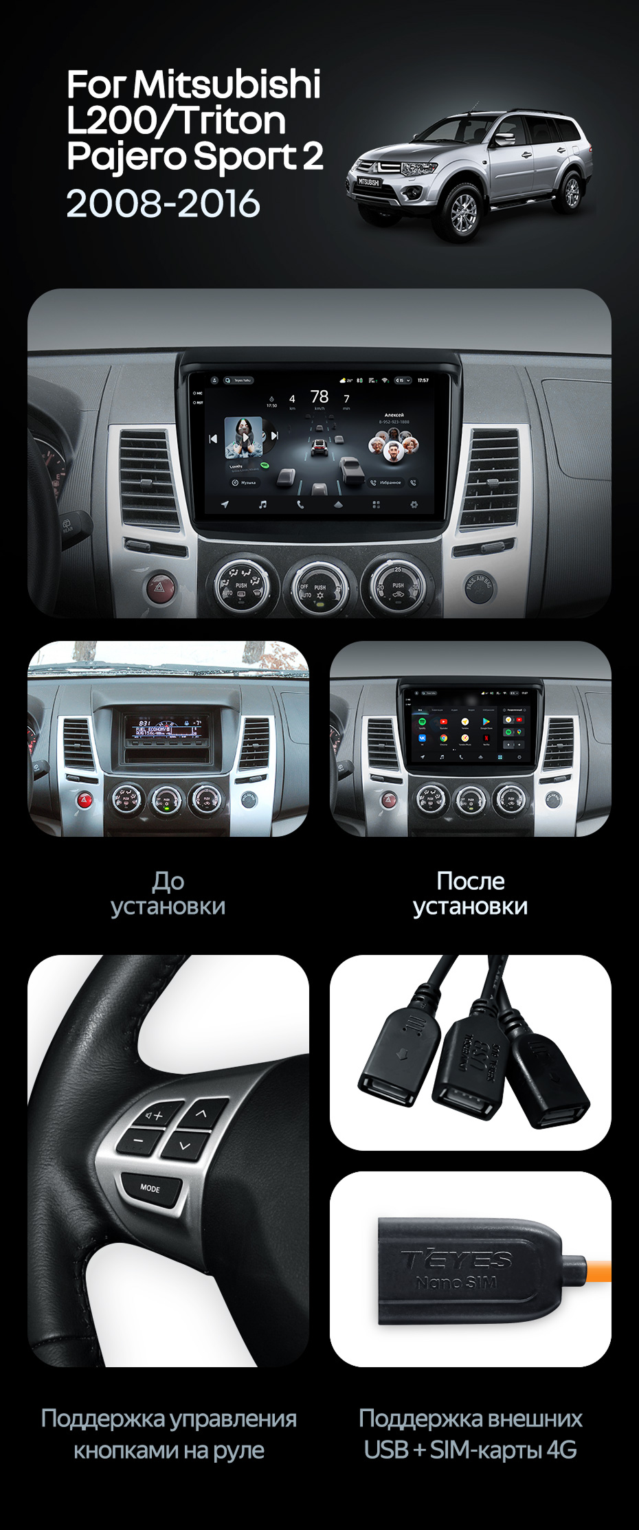 Штатная магнитола Teyes CC4 8/128 Mitsubishi L200 (2008-2016) - купить всего за 47 750 руб. в интернет-магазине в Великом Новгороде Teyes.com.ru. ✓ Самый лучший выбор мультимедиа ✓ Лучшая замена штатному ГУ ✓ Тел. +7 (800) 775-31-74